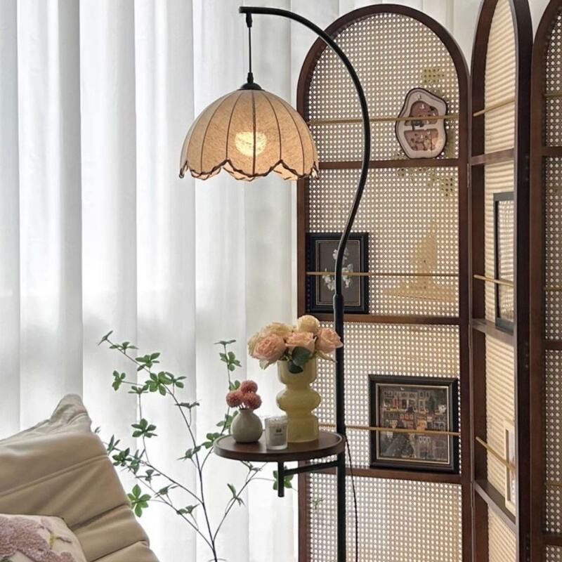 Vintage Pumpkin Shade LED Floor Lamp With Side Tray