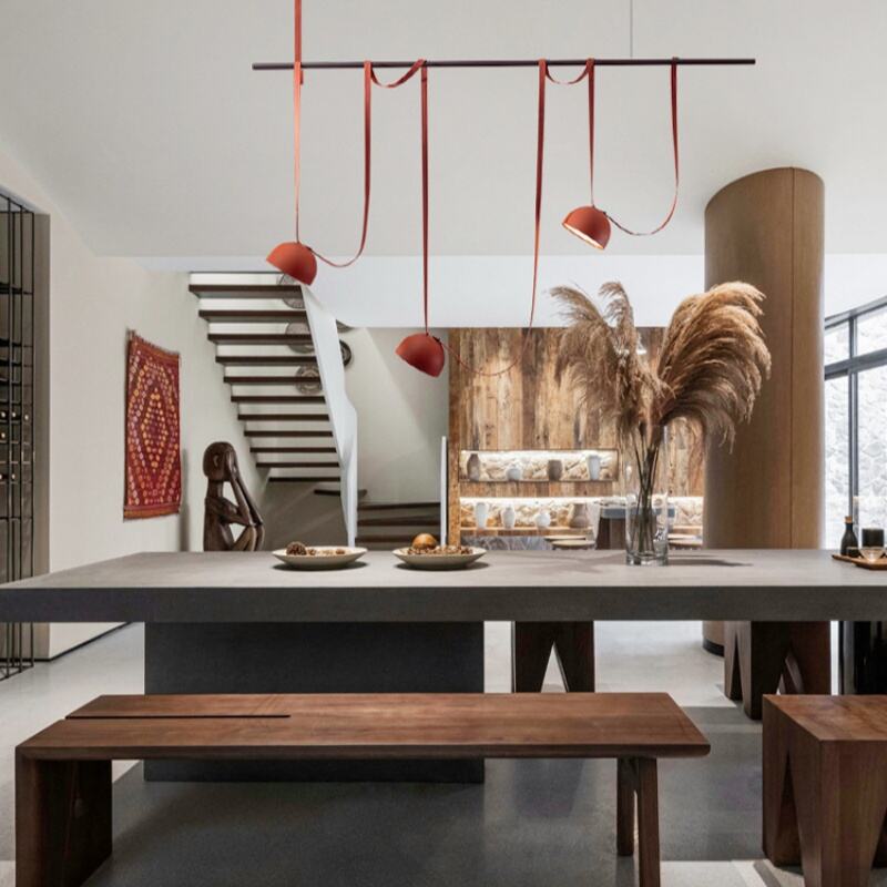 Italian Designer Leather-Strap Pendant Light for Living Room Dining Room Bar