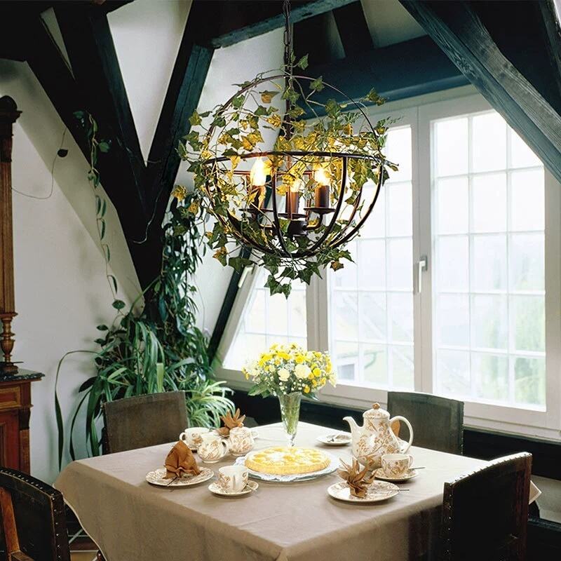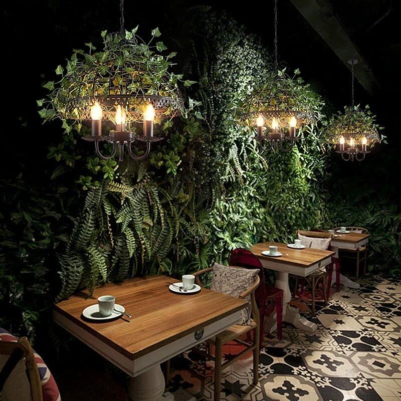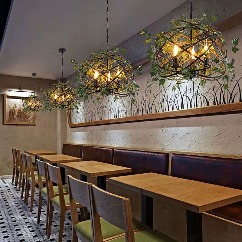 Simulation grass Pendant Light +wood