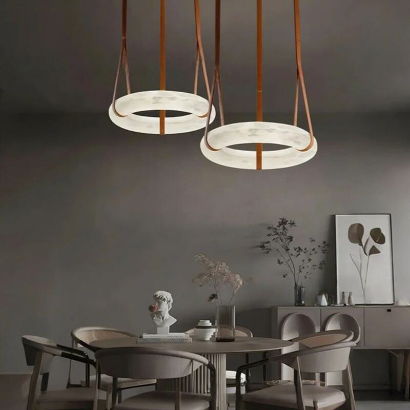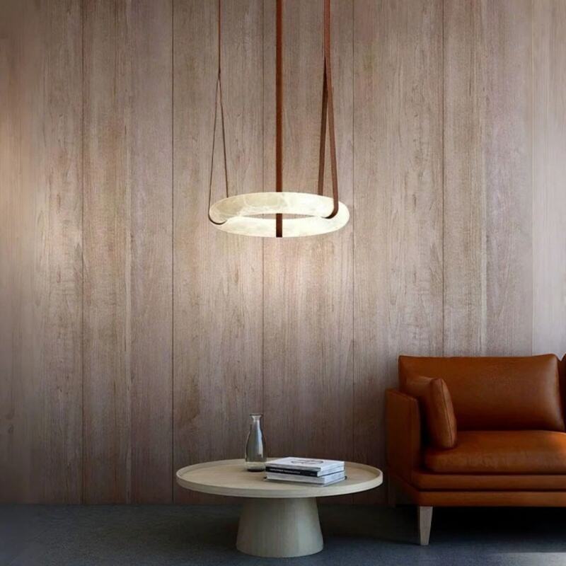 Modern Minimalist Light Luxury Leather & Marble Pendant Light
