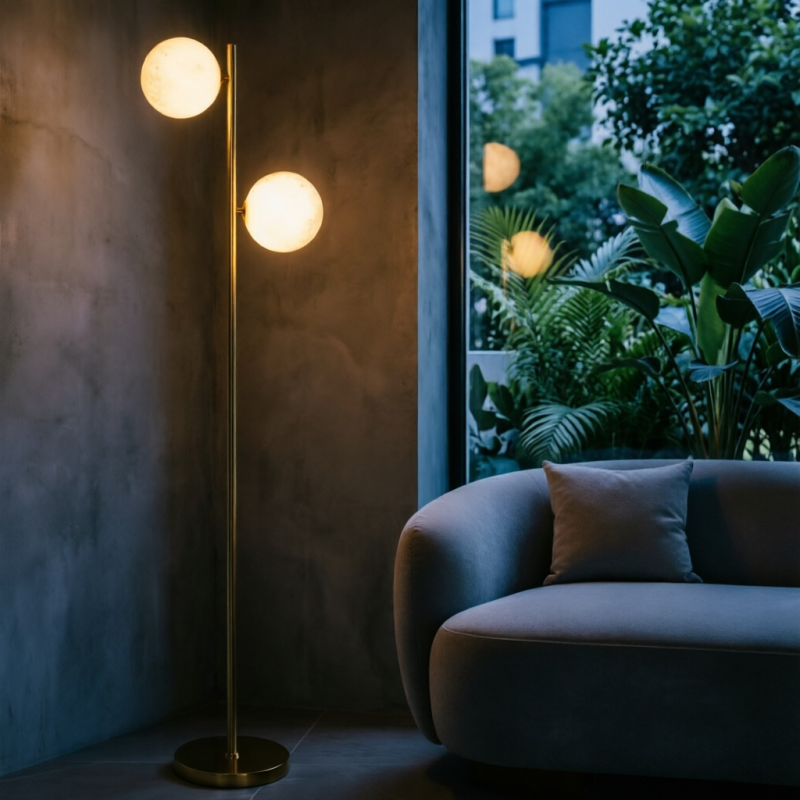 Luminária de Chão LED com Dois Globos