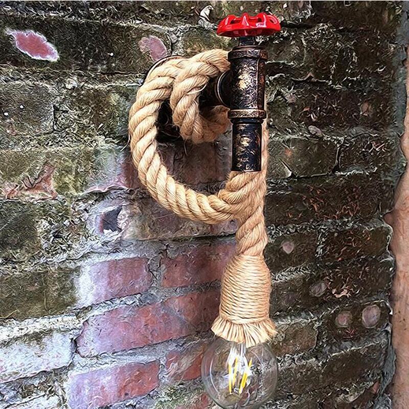Hemp rope water pipe wall lamp